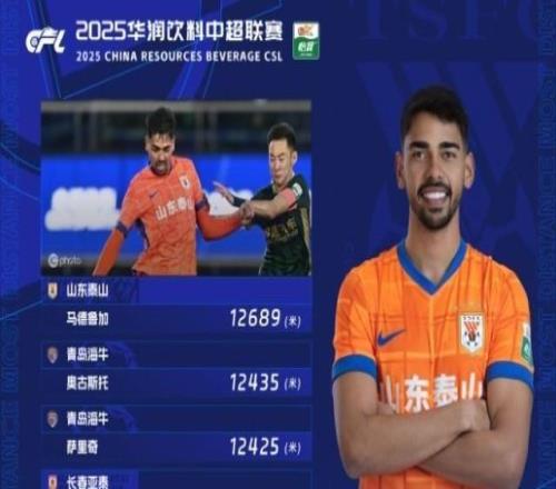 中超第27轮跑动距离:马德鲁加第一中国足球 10-23 11:37中超联赛官方公布第27轮跑动距离榜。在对阵浙江队的比赛中,山东泰山外援马德鲁加的跑动距离达到12689米,位列榜单第一,这
