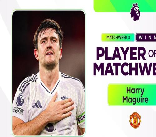 雷速体育10月22日报道宣称 英超官方消息,曼联后卫马奎尔被评为英超第8轮最佳球员。双红会中,马奎尔在第84分钟对阵卫冕冠军利物浦的头球发挥了决定性作用,帮助曼联以2-1获胜,这