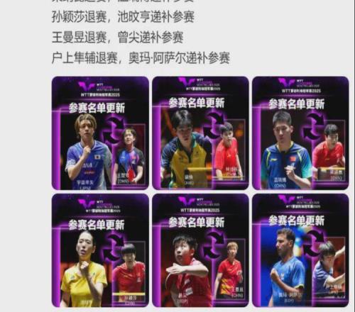 WTT蒙彼利埃冠军赛参赛球员更新:国乒多位选手退赛