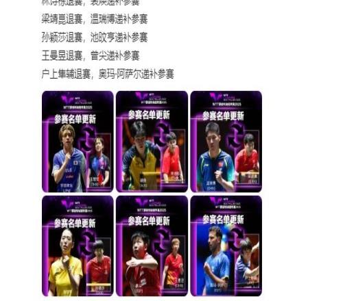 孙颖莎、王楚钦等人退赛